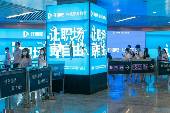 资本的味道,广告商嗅觉最灵敏。在这里,一眼望去,凡是金钱能抵达的最远处,都布满了开课吧的巨幅蓝底广告。