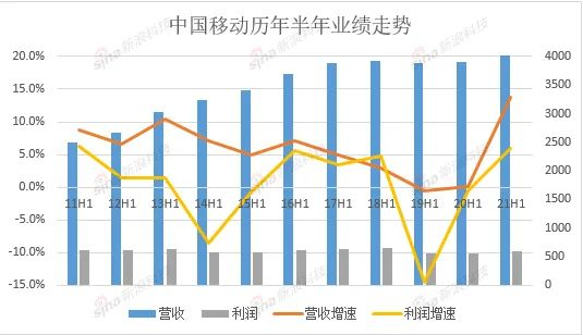 近日,中国移动公布了2021年上半年财报,运营收入为4436亿元,同比增长13.8%;净利润为591亿元,同比增长6.0%。对比历年半年报数据,可谓是又交出了史上业绩最佳的半年报。