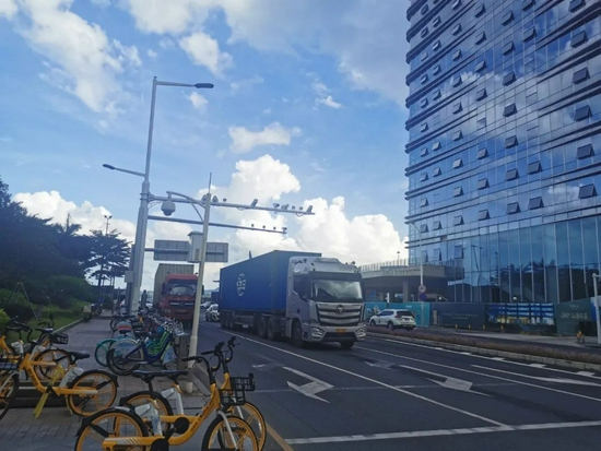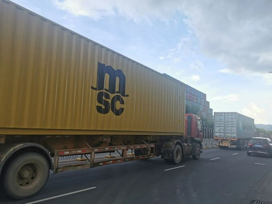 货柜拖车驶离盐田港码头