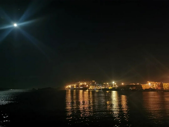 繁忙的盐田港码头灯火通明