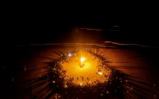 “仲夏夜之梦”主题巡游期间在海边点燃的篝火。