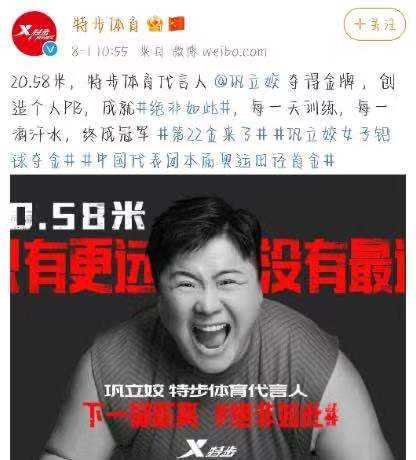 而东京奥运会后,在比赛中获得金牌的奥运冠军,更是成为各大品牌争相抢夺的人选。即使是冷门运动项目,运动员也能借助奥运后的热度站在聚光灯下,如举重冠军谌利军和铅球冠军巩立姣分别成为平安健康保险首位健康大使和特步品牌代言人。