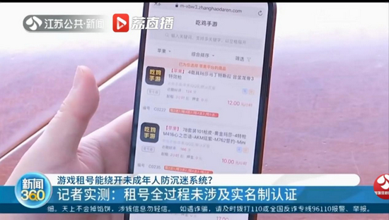 有媒体报道,目前网上活跃着大量游戏账号出租平台,一小时一块多钱就可以直接登录游戏,打游戏可以不限时。记者亲测发现,虽然部分平台设置了“实名认证”环节禁止未成年人下单,但多数平台仍可以“场外交易”的形式轻松租到账号,并让游戏厂商的“防沉迷系统”形同虚设。