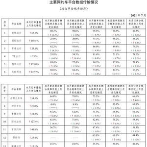 交通运输部日前公布数据显示,2021年7月国内订单量超过30万单(注:交通运输部每月以30万单为标准对主要网约车平台运行情况进行统计)的网约车平台共有17家。与6月份相比,新增携华出行、招招出行、伴个桔子、去哪儿专车、及时用车5家平台。