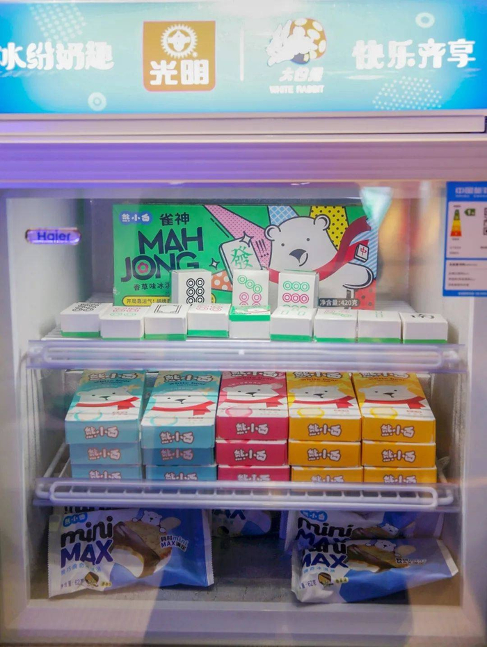 有70年历史的上海品牌光明乳业则在近年陆续推出年轻化单品。公司不仅将传统产品“三色杯冰淇淋”的口味改造成“咖啡+香草+百香果”,旗下子品牌熊小白还研发出以麻将牌为包装形状的雀MAHJONG冰淇淋。