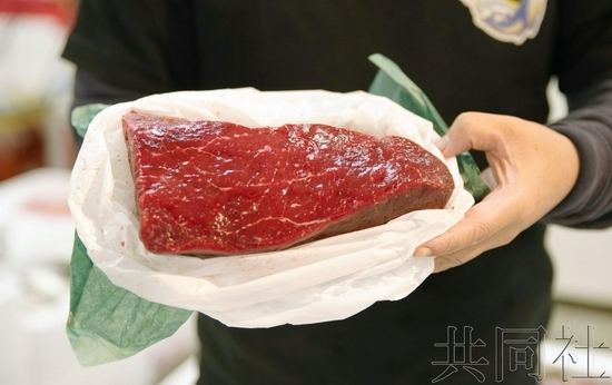 鲜鲸鱼肉首次登陆东京丰洲市场 图自外媒