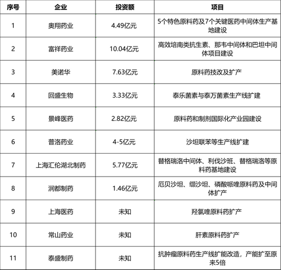 国内企业原料药扩产项目密集上马