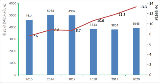 图3 我国化学原料药制造业主营业务收入及利润率变化情况 (数据来源:工业和信息化部)
