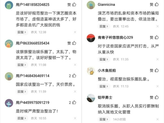 有网友直呼演艺圈门槛越来越低,“现在的一些明星,唱歌没功底,演戏没演技,却靠颜值、靠露腹肌吸引粉丝,赚得盆满钵满。”也有网友强烈呼吁整治“饭圈”资本乱象,期待有关部门以雷霆之势净化影视作品制作环境。