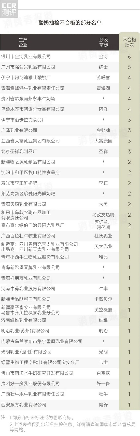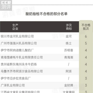 抽检结果显示,标称由银川市金河乳业有限公司生产的酸奶不合格次数最多,高达6次。