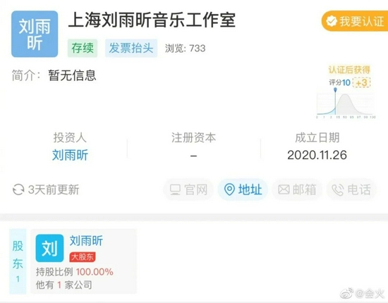 明星做自己老板的时间越来越快。例如,2020年5月通过《青春有你》C位出道的刘雨昕,在当年11月即宣布成立位于上海的音乐工作室。