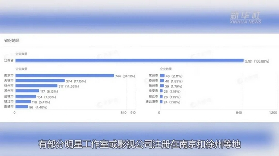 天眼查和企查查数据显示,明星多在江苏等省注册工作室