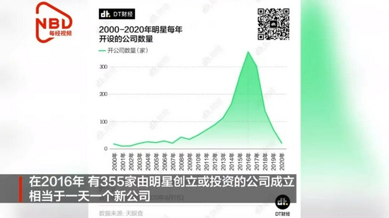 2016年,有355家由明星创立或投资的公司成立(来源:微博@每日经济新闻)