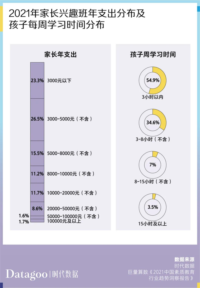 不过,由于政策及行业都几乎刚刚起步,目前家长们在兴趣班教育投入上还处于培养期。