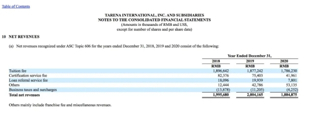 从事IT企业培训的达内教育为例,2020年财报显示,2018年、2019年和2020年,分别有45.6%、52.3%和15%的学生贷款支付学费,其合作的第三方金融机构,包括百度小额贷款有限公司、北银消费金融有限公司等。