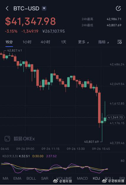 受虚拟货币巨头交易平台暂停服务影响,9月26日16时,比特币价格急转直下,1小时内暴跌近2000美元。虚拟货币市场恐慌情绪严重,资金有明显出逃迹象。UAlCoin数据显示,虚拟货币合约一日内共爆仓超12亿元人民币,最大单笔爆仓金额高达1847万元。
