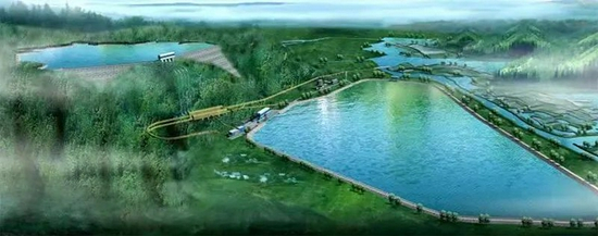 据介绍,上水库的设计蓄水容量为1612万立方米,通过输水系统连接地下厂房,再连接至下水库。