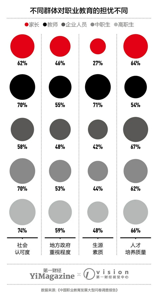 职业教育研究者们达成的一个共识是,职业教育不能与真实世界脱钩,需要的是一种终身学习能力的培养。“职业教育要跟经济需求挂钩,不能所有学校都开出一堆实用性不高的专业,学生毕业后找不到对口的工作。”许辉对《第一财经》YiMagazine说,“另一方面是社会观念问题,如何重塑社会观念,这个社会身份是需要被重构的。并且,社会要能弥补工人社会身份的落差。”
