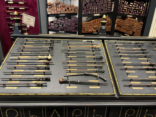 在哈利波特纪念品商店里,一名刚完成购物的年轻女性接受了记者采访,“魔杖价格是349元、巫师袍是849元,这些网上‘吐槽’贵的东西我都买了,还要加上一条299元围巾。”