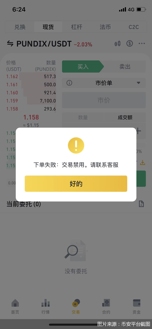 对于币安相关负责人所述情况,9月29日北京商报记者再次登录币安App进行了体验,多次尝试进行现货交易等操作,被提醒“下单失败:交易禁用”。