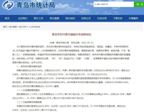农村青年婚姻情况受到了多方关注。据媒体报道,今年多地统计部门发文称,根据《国家统计局办公室关于做好2021年重点选题调研工作的通知》以及《国家统计局关于开展农村青年婚姻关系调研的通知》,选择部分地区进行农村青年婚姻关系情况调研。