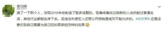 2016年,宋冬野因涉毒被警方抓获。虽然五年过去了,但这篇微博也让很多网友表示:通篇看完只有一个感想,一点没有反省的意思都没有。