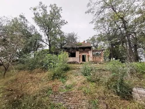 推开庙门,半人高的荒草蔓延其间。杂草丛中,曾经恢弘的正殿,仅剩一副砖木框架,正殿一侧早已被雨水淋塌。此次雨灾,更加速了玉皇庙的损毁,北侧外墙已塌出一个口子,砖石散落一地。