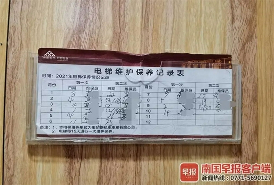该负责人表示,每次接到电梯故障反映后,物业都会通知维保人员,并详细登记情况。根据记录,4栋故障最多。