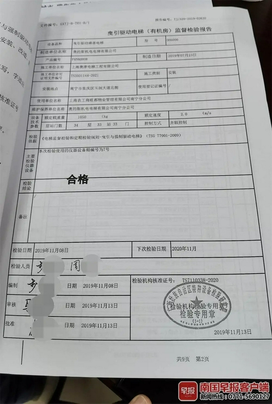 雅集苑小区物业项目经理苏先生表示,电梯监督检验报告以及特种设备使用标志在物业都有备案。记者看到,报告的“检验结论”一栏均为“合格”。