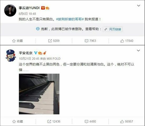 10月21日,“平安北京”在通报前曾发微博称,“这个世界的确不止黑白两色,但一定要分清和划清黑与白……”