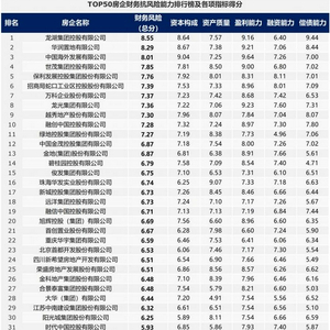 为了客观反映房企财务风险状况,我们从资本构成、资产质量、盈利能力、融资能力、偿债能力五大维度设置了具体的打分指标和权重,通过对五大维度超过40个四级指标进行打分并按权重统计得出TOP50强房企财务抗风险能力得分并据此排名。