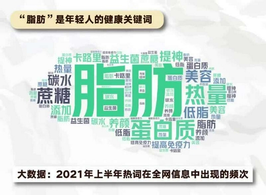 尽管饮品难以割舍,但控蔗糖控脂肪观念深入人心。选择无蔗糖与三分糖饮品的受访年轻人超半数,且年纪越大,越能自觉告别“无糖不欢”的生活。与此同时,报告大数据部分显示,在2021年上半年与饮品健康相关的报道和网民讨论中,“脂肪”被提到的频次高居榜首,“蛋白质”“热量”“蔗糖”等词则紧随其后。