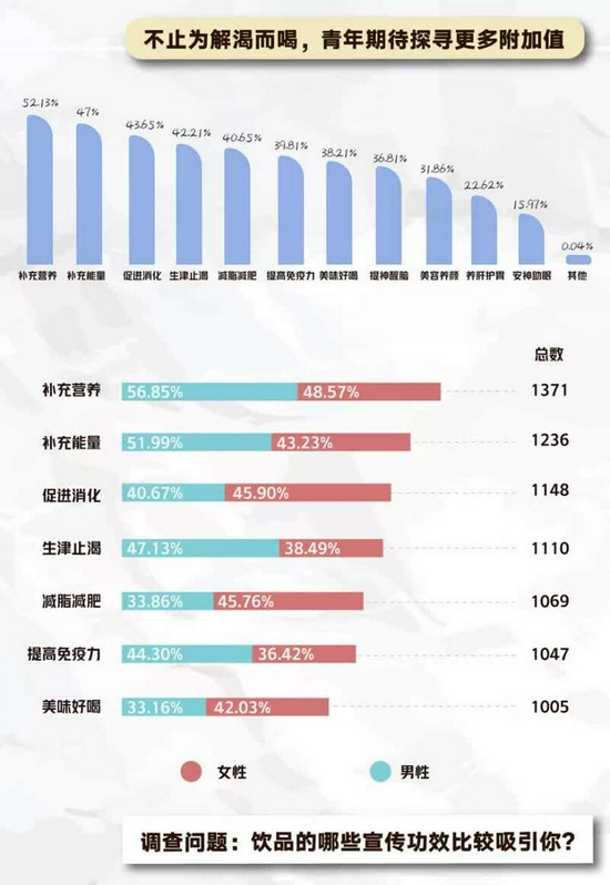 报告显示,不止为解渴而喝,年轻人期待在饮品中探寻更多附加值。