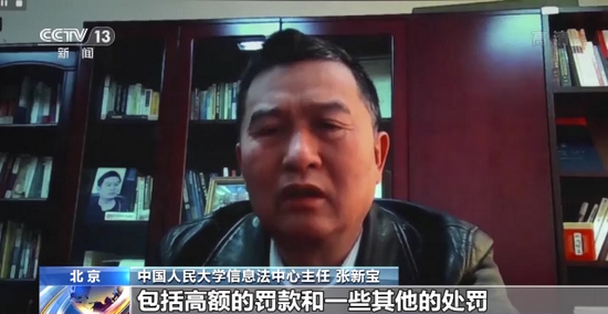 中国人民大学信息法中心主任 张新宝:它的法律手段是综合的,在法律责任上面它既然有行政法律责任。包括高额的罚款和一些其他的处罚,行政法律责任,还有民事法律责任,以及刑事法律责任,严重者还要去坐牢的,同时还规定了公益诉讼,所以它的法律手段是综合的全面的。