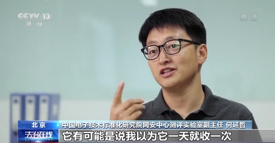 中国电子技术标准化研究院网安中心测评实验室副主任 何延哲:平时有一些不应该提供的信息,它强制地需要,到最后就收走了,有些可能我都不知道的信息被它收走了。尤其一些自动采集的措施,还有一些我知道它要收但是我不知道它是怎么用,它有可能是说我以为它一天就收一次,结果它一天收了一百次。