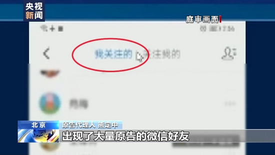 原告诉讼代理人 熊定中:原告没有做任何添加关注操作的情况下,在自己的账户中“我的关注”页面出现了大量原告的微信好友,而且在‘关注我的’栏目下,也同样出现了大量的原告微信好友。