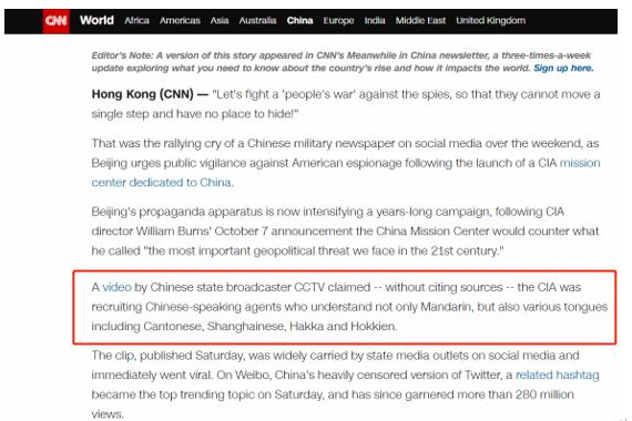 美国有线电视新闻网(CNN)、《华盛顿邮报》和彭博社等媒体都曾对“中国任务中心”的成立做过相关报道,但没有一家媒体提及CIA打算为此公开招募懂中国方言的特工。