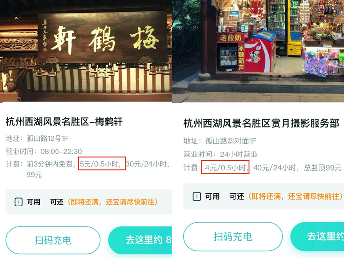巧的是,市场上存在的最高价格也正是10元/小时。记者查看杭州西湖景区的共享充电点位的价格发现,虽然大多数点位目前的价格是6元/小时,但10元/小时的共享充电宝仍然存在。