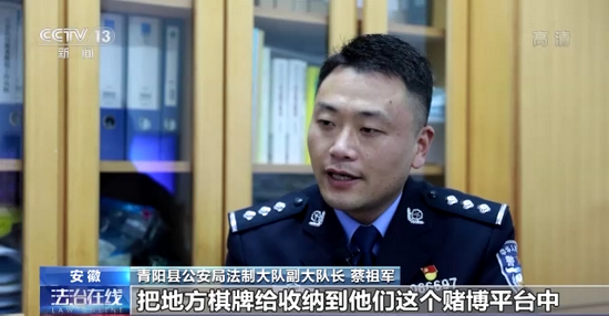 青阳县公安局法制大队副大队长 蔡祖军:它这个网络棋牌赌博平台,主要是发展各个地方的赌博玩法。每推广到一个省级,就会到这个省份来收集地方棋牌的玩法,通过公司里面的技术员工来制定相应的规则,把地方棋牌收纳到赌博平台中;通过地方棋牌的玩法来进行推广,适应地方玩家的口味。后来发展到十几个省市。
