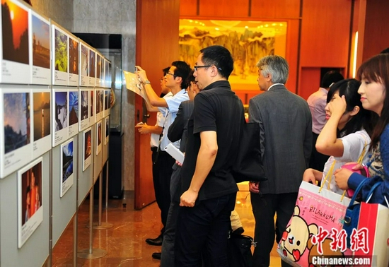 2016年9月,中国驻日本大使馆举行“镜彩中国——日本人游中国摄影大赛”颁奖典礼。影赛作品吸引众多日本民众参观。中新社记者王健摄