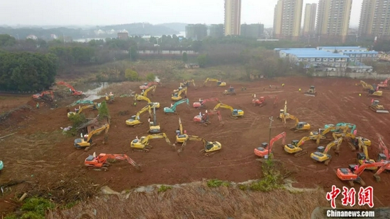 2020年1月,武汉疫情期间,位于武汉市蔡甸区的武汉“小汤山”模式专门医院开建。中新社记者 郑子颜 摄