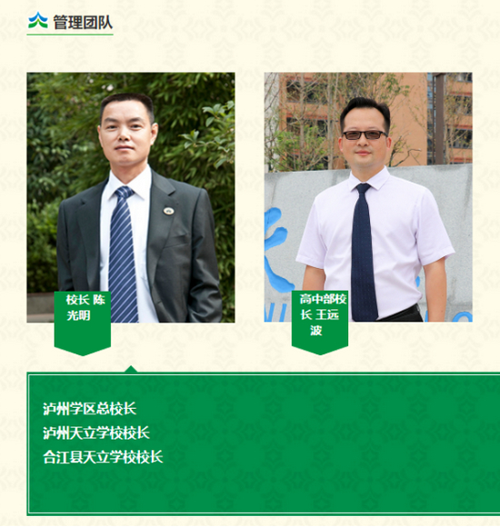 随后,证券时报·e公司记者来到合江天立,该校大门所标注的校长也是陈光明。一位自称是合江天立高中段校长表示,陈光明是天立泸州片区总校长,但当天不在学校,针对童敏涉嫌的合同诈骗相关事件,该人士并未给予回应。