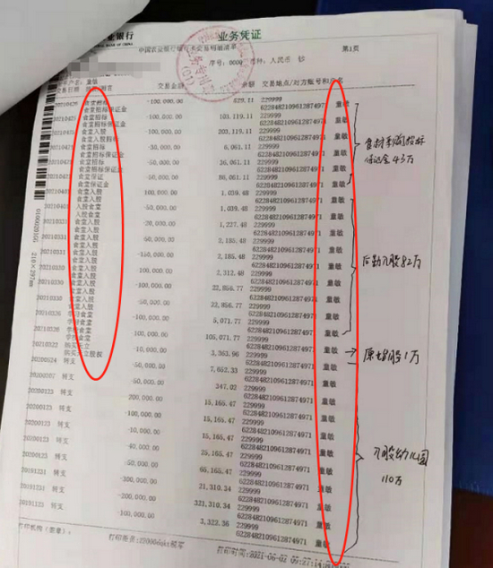 回到童敏案,证券时报·e公司记者从上述天立合江学校学生何安康(化名)家长处了解到,2021年3月,童敏还以天立集团股权有空缺额度为由,通过手机银行和微信转账方式收取其6万元。当月,童敏又向该名家长表示,她已从合江天立学校调回泸州总部负责后勤工作,组建配送公司承办几个天立学校食堂,寻求家长入股。2021年3月22日~4月25日期间,童敏以天立原始股权投资、学校食堂入股、食材招标保证金等名目,获取上述家长126万元。