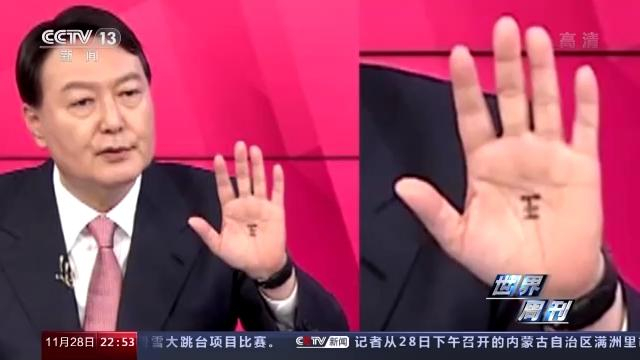 11月3日,《韩民族日报》报道称,尹锡悦此前3次参加其所在的韩国最大在野党国民力量党党内竞选讨论会时,掌心都疑似出现汉字的“王”,似乎暗示自己就是“想当王的男人”。