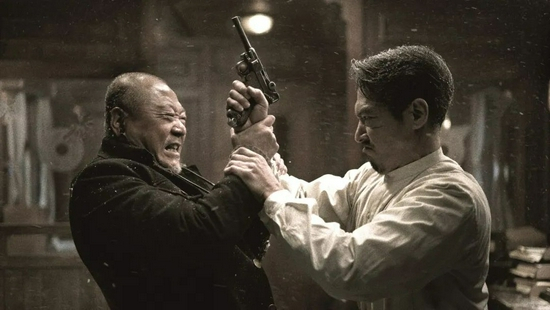 ·电影《铁道英雄》中, 范伟(右)饰演的老王与日本头目藤原有一场爆发力十足的对峙戏。