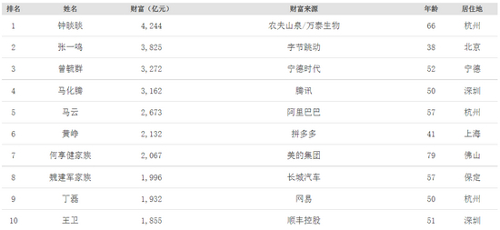 今年11月初,《福布斯》杂志公布了中国富豪榜单。排名第一的是农夫山泉董事长钟睒睒,身价为4244亿元。字节跳动创始人张一鸣(3825亿元)、宁德时代创始人曾毓群(3272亿元)、腾讯创始人马化腾(3162亿元)紧随其后。