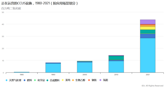 尽管这些CCUS项目只取得了有限的成果,但该领域自2010年以来已经获得了一些重要进展:CCUS设施的二氧化碳捕集能力提升了两倍,已达到每年4000万吨二氧化碳以上;CCUS商业性应用的经验也已扩展至钢铁、电力和氢能领域。