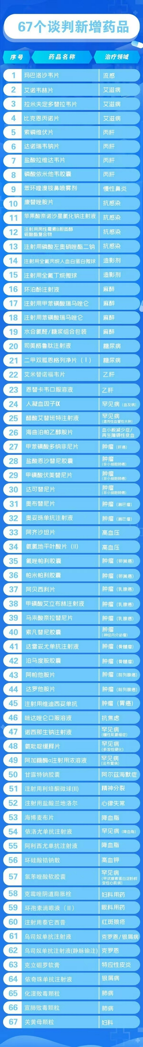 此外在传染病领域此次也有多个新药被纳入医保,艾滋病领域中艾迪药业的艾诺韦林片、吉利德的比克恩丙诺片、葛兰素史克的拉米夫定多替拉韦片;乙肝方面,豪森药业的艾米替诺福韦片和扬子江药业的恩替卡韦口服溶液纳入医保;丙肝方面,歌礼制药的达诺瑞韦钠片和拉维达韦片、东阳光长江药业的磷酸依米他韦胶囊、吉利德的索磷维伏片纳入医保;罗氏的流感新药玛巴洛沙韦也谈判成功。