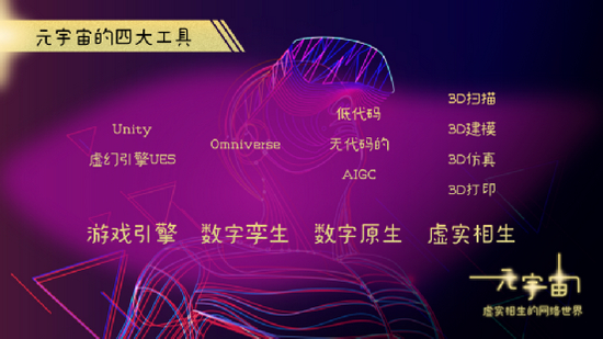 肖风说:“我们不能简单把元宇宙归结为下一代互联网,它是下一代网络。今天分享的题目叫元宇宙——虚实相生的网络世界。看见虚妄,才知实相,给你一个全面的、立体的、完整的真实世界。”