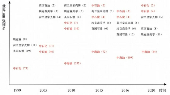 2020年中石化和中石油分列第2位和第4位,荷兰皇家壳牌、英国石油、埃克森美孚分列第5位、第8位和第11位,中海油排名上升至64位。